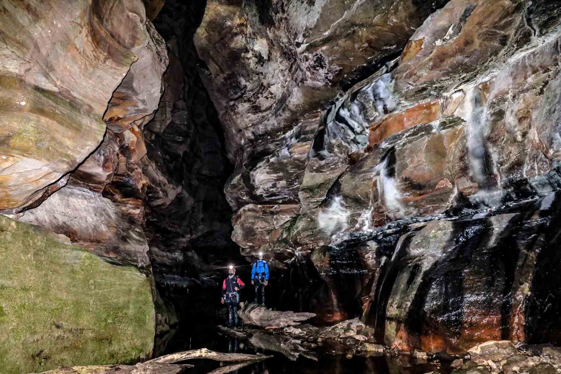 This canyon begins with a 16-metre abseil down to the canyon floor. It’s a 2-hour walk, wade and swim as you follow the deep and spectacular canyon through caverns of amazing rock formations, fern-lined walls and narrow slots. The final plunge is a 30-metre swim to the canyon’s end.